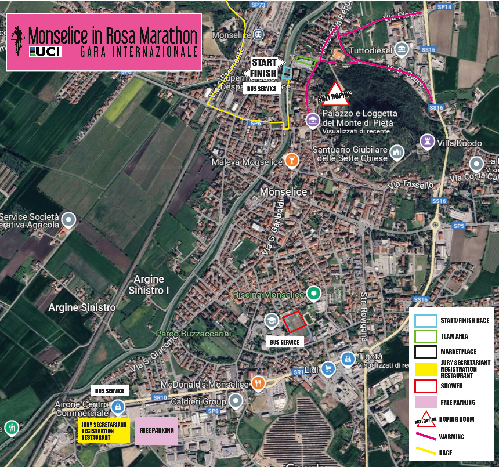 • Apertura consegna pacchi gara: sabato 30 maggio 2026 dalle 15:00 alle 18:30 e domenica mattina 31 maggio 2026 dalle 7:00 alle 8:30 presso CENTRO COMMERCIALE AIRONE via Cristoforo Colombo, 79 Monselice