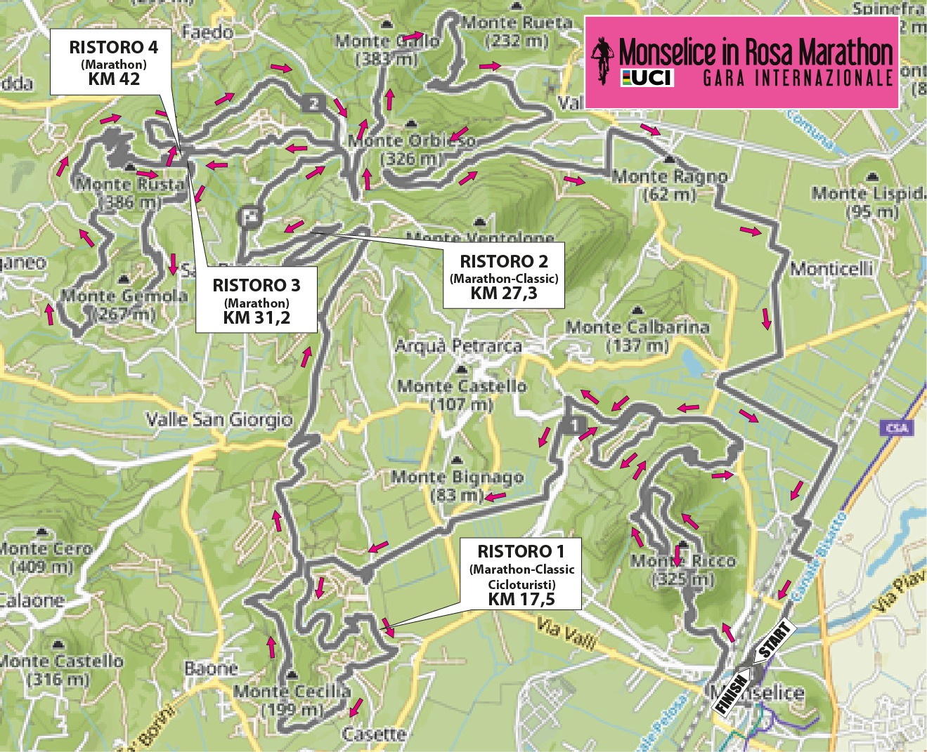 Dal ristoro 2 si accede ai ristori 3 e 4 passando per via Monte Fasolo e seguendo le indicazioni di sicurezza del personale addetto al percorso. Sostando solo al ristoro 3 si potrà vedere l’arrivo dei primi atleti, percorrendo anche il ristoro 4 non si vedrà l’arrivo dei primi atleti. Per rientrare a Monselice senza intralciare gli atleti in gara, dai ristori 3 e 4 seguire le indicazioni dello Staff, seguire via Giarin > Fontanafredda > Cinto Euganeo > Valle San Giorgio > Arquà Petrarca > Monselice.